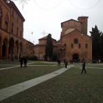 Tras la comida nos dirigimos a la recoleta plaza de Santo Stefano, donde se encuentran el complejo de las Siete Iglesias y para mi solo este lugar ya justifica la visita a Bolonia, es un reflejo de la historia de la iglesia desde el siglo V, no es un sitio muy grande pero si muy especial, vas pasando de una capilla a otra desde la iglesia del Crucifijo, antigua catedral lombarda, a la iglesia del Santo Sepulcro, de forma poligonal (tumba de San Petronio); la iglesia de los Santos Vidal y Agrícola (ss. VIII – XI) y a traves por el patio de Pilatos la iglesia de la Trinidad, antiguo martirium y al fondo del patio, un claustro románico que precede a un pequeño museo de arte sacro, mis fotos no son muy buenas pero lo mejor es verlo