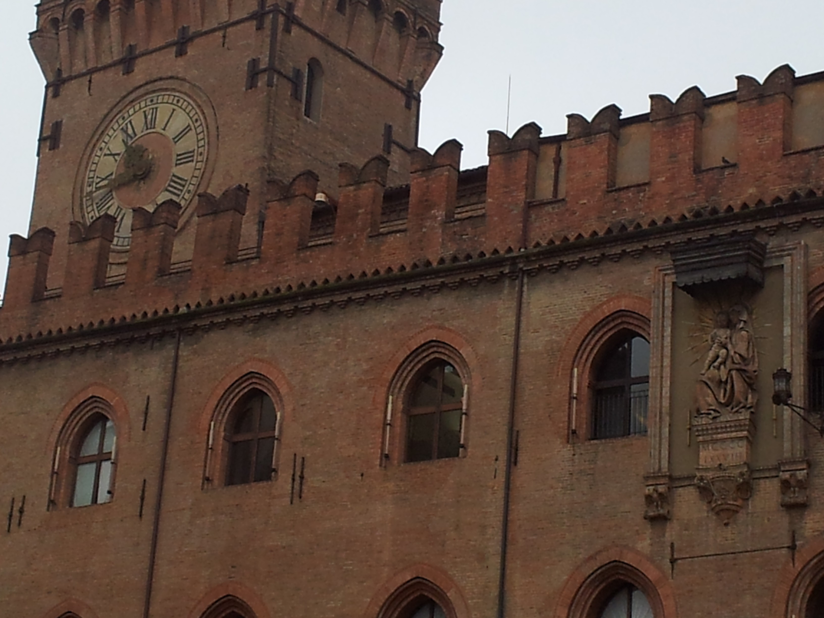 Al día siguiente nos dirigimos de nuevo por la Via de la Independencia hasta el Cuadrilatero y realizar la visita a la ciudad que organiza la oficina de turismo, la duración de la visita es de dos horas y el coste fue de 13 euros por persona, yo la recomiendo aunque sea en italiano porque se entiende muy bien y la guía es muy buena, se nota que tiene mucha formación y facilita la comprensión. La visita se inicia en el Cuadrilatero que como he dicho es el centro neurálgico de la ciudad, encontrareis allí la fuente de Neptuno, a la que los boloñeses llaman il Gigante, es una fuente barroca espectacular de la que os he dejado foto, el palacio de la Borsa cuyo suelo transparente os permitirá ver restos romanos y etruscos de la ciudad, el Palacio Re Enzo (https://es.wikipedia.org/wiki/Palazzo_Re_Enzo), la Basilica inacabada y hermosísima de San Petronio, http://www.basilicadisanpetronio.it/ , y su meridiana, el palacio del Podesta, el ayuntamiento o Palacio de Accursio,todos de ladrillo rojo que da el otro sobrenombre a la ciudad, Bolonia Roja (aunque algunos dicen que también tiene ese nombre por su combatividad social)