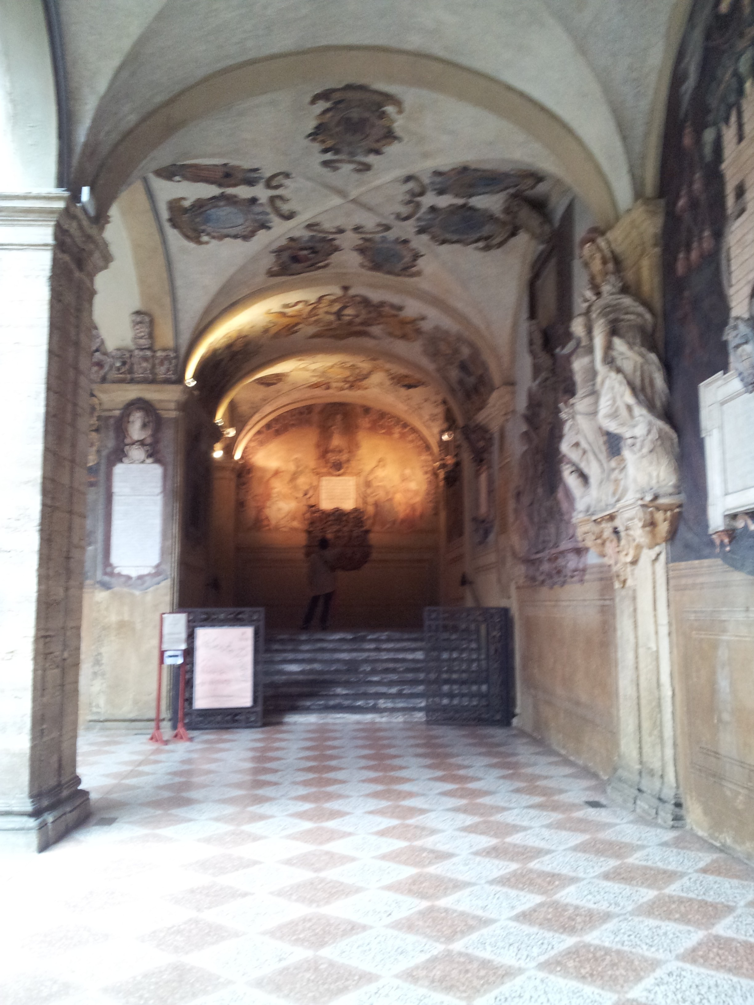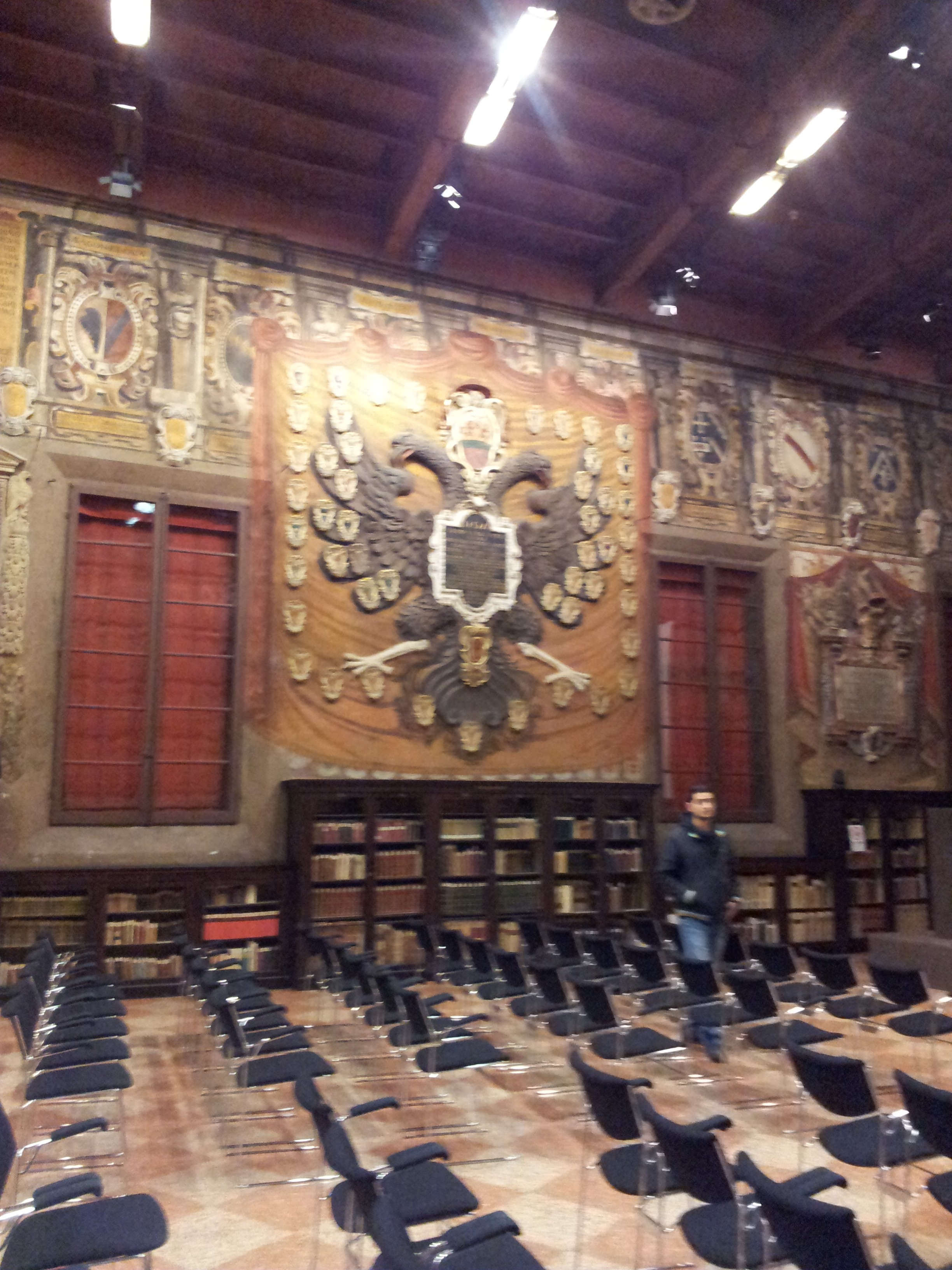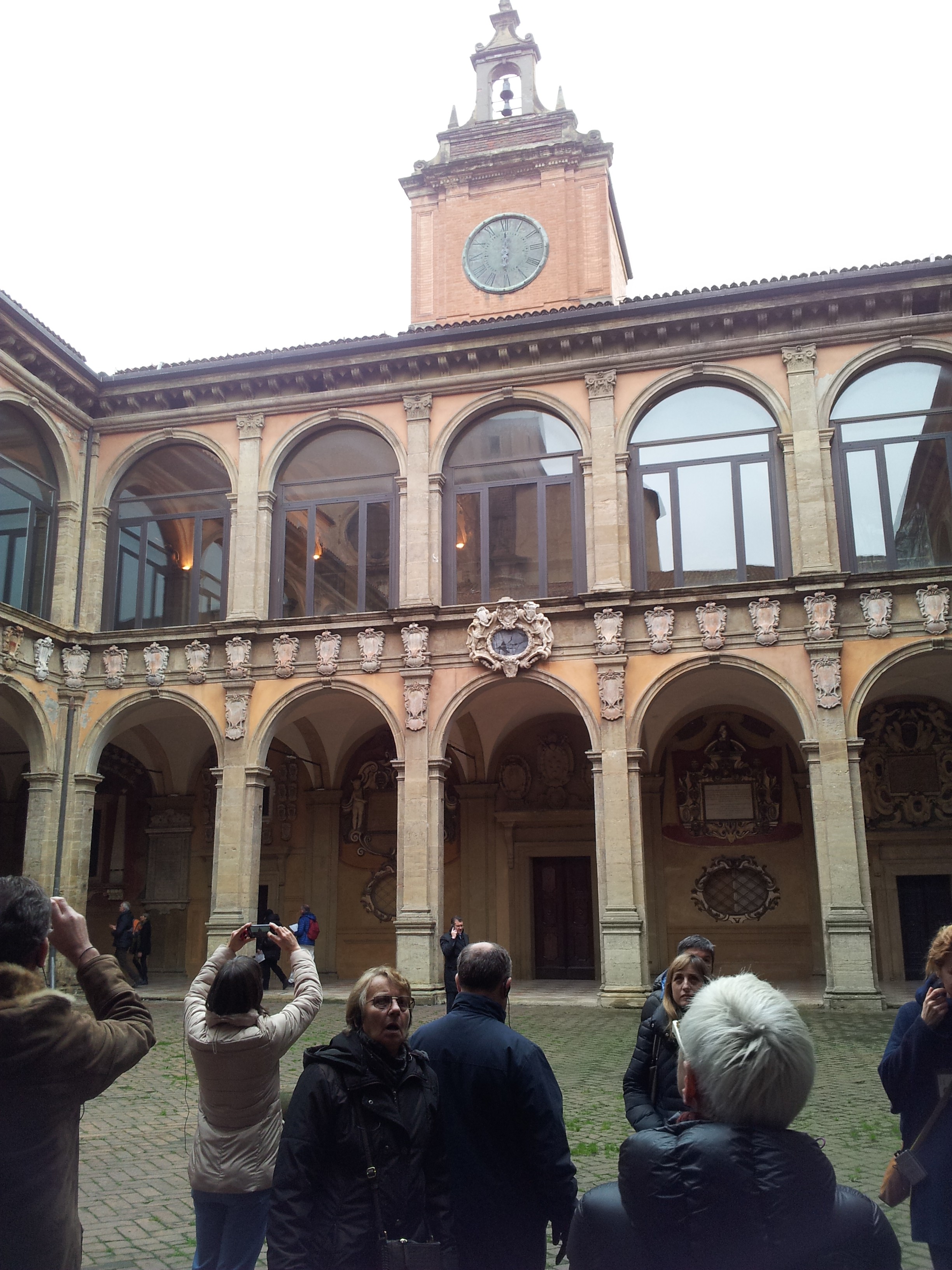 Bolonia fue fundada por los etruscos, fue colonia romana, pero su esplendor llega con la creación de la Universidad en el siglo XI, en 1088 para ser exactos y se considera la Universidad más antigua de Occidente, siendo esta la causa de uno de los sobrenombres de la ciudad , la Docta. Desde su fundación contó con gran prestigio y entre sus alumnos más famosos se encuentran Dante Alighieri, Petrarca, Thomas Becket, Erasmo y Nicolás Copérnico, así como una lista interminable de colegiales españoles que, desde 1369, cuando abrió sus puertas el Real Colegio de España, llevan realizando sus estudios allí. Podemos destacar entre los más sobresalientes a Juan Ginés de Sepúlveda, Antonio de Nebrija, Antonio Agustín o San Pedro de Arbués. A día de hoy la universidad acoge a unos 100.000 estudiantes y sigue teniendo cátedras de prestigio, http://www.unibo.it/it. En vuestra visita a Bolonia podréis visitar el palacio del Archigimnasio, la antigua sede de la Universidad que como veis es estas fotos es una verdadera maravilla