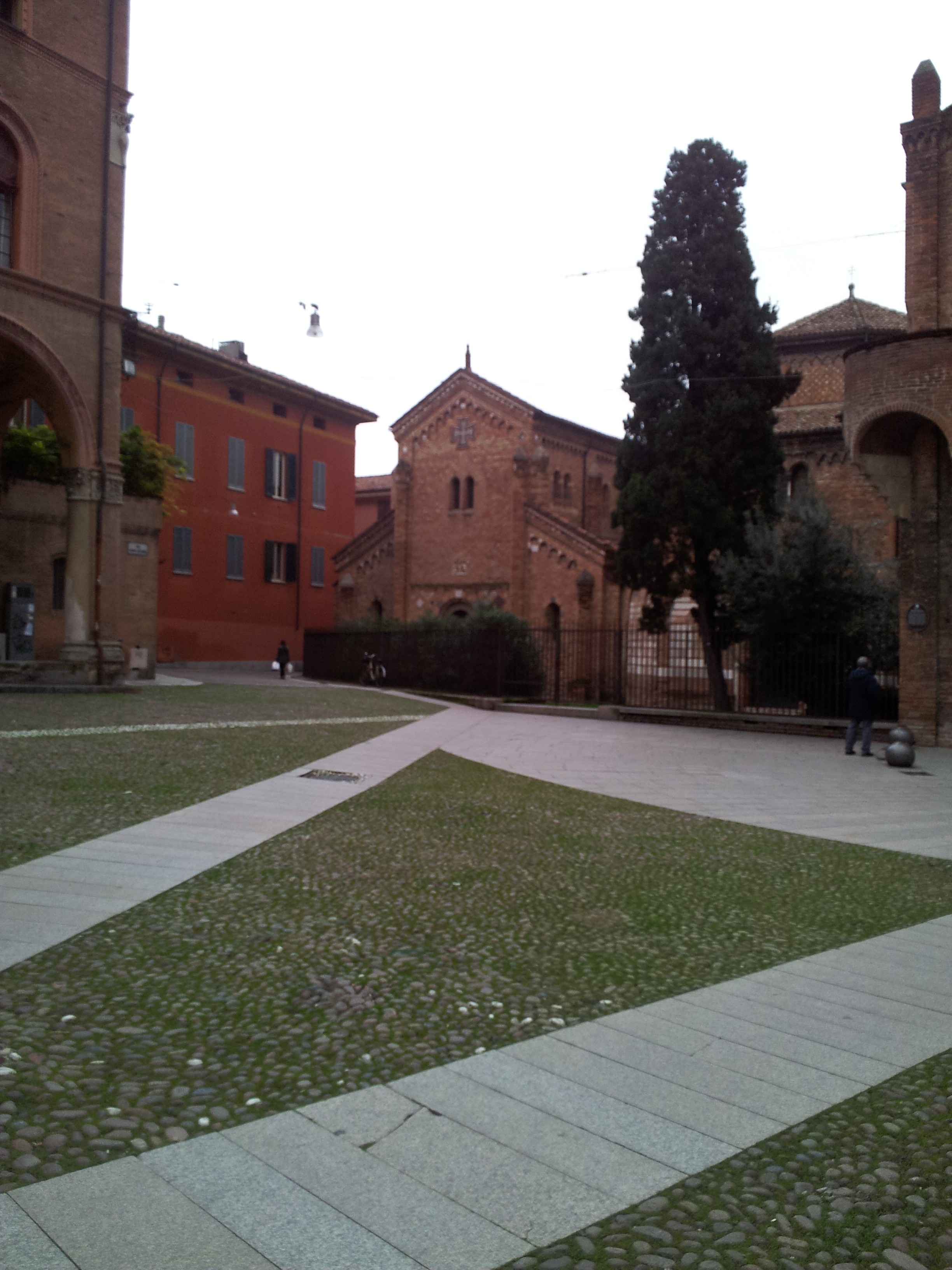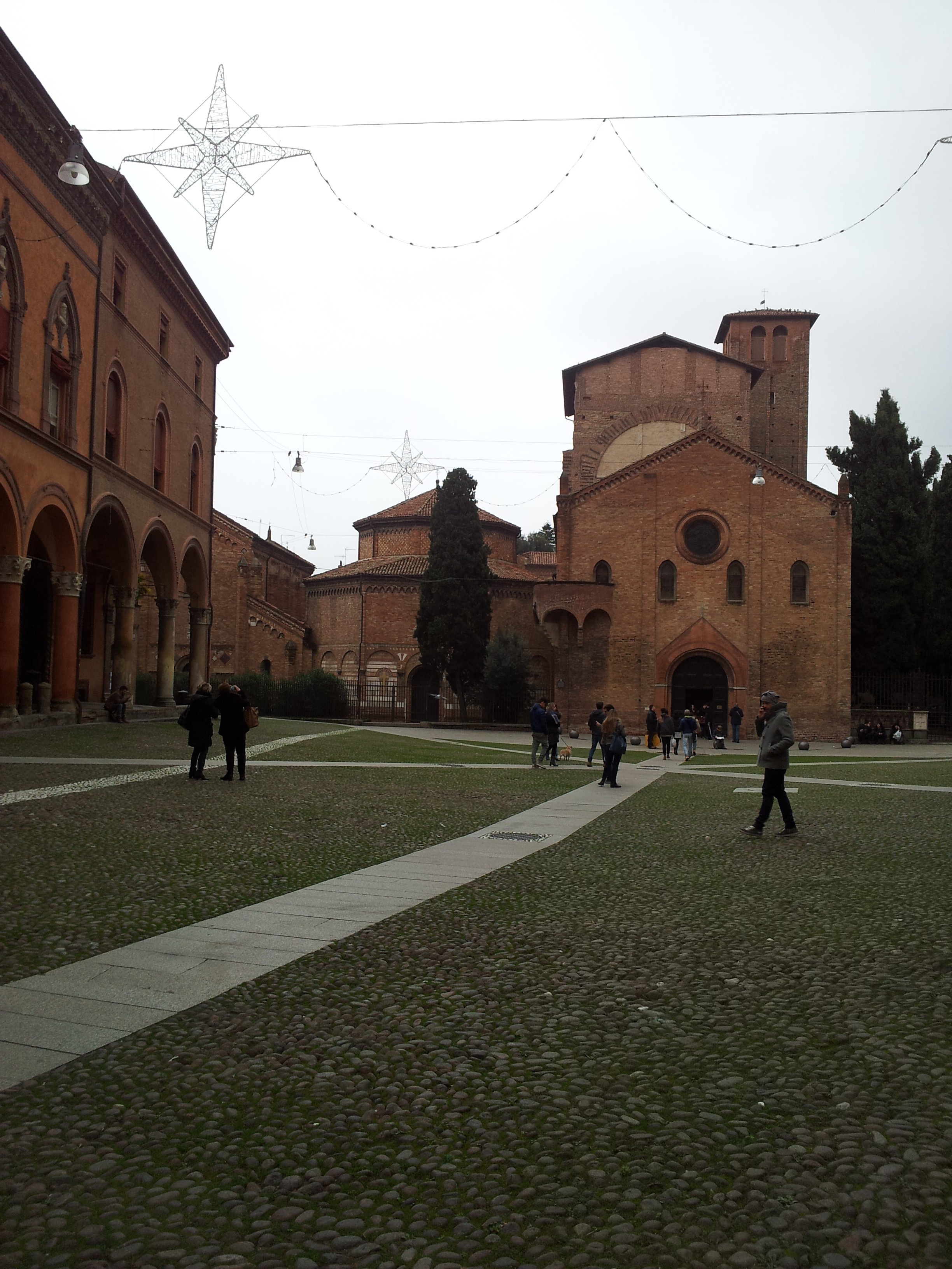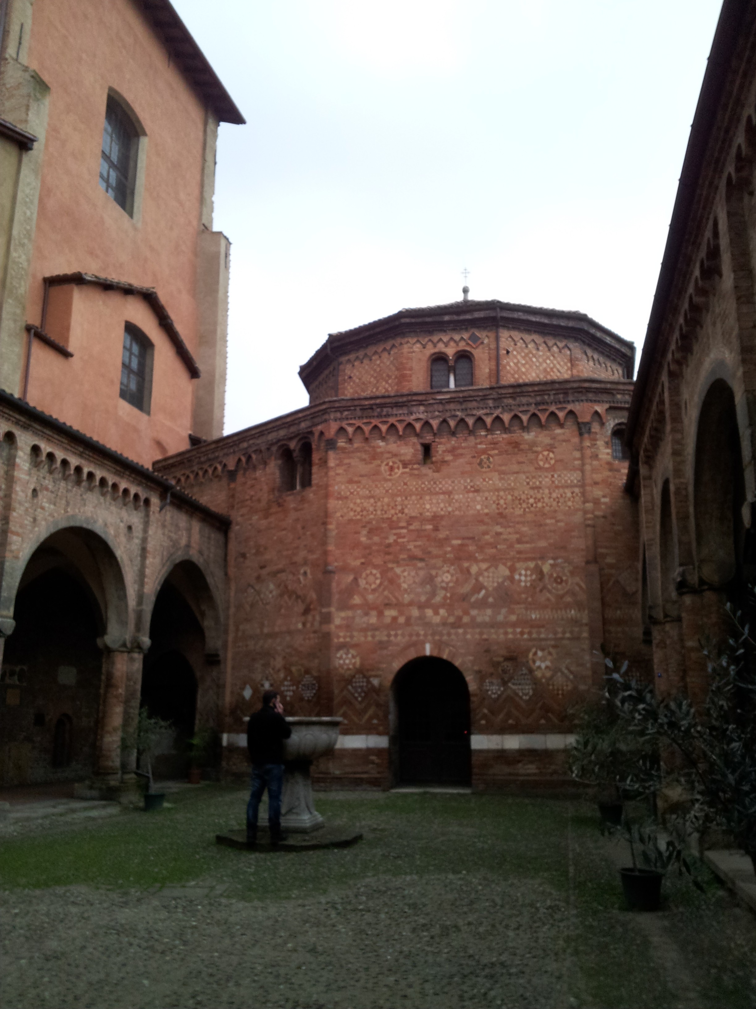 Tras la comida nos dirigimos a la recoleta plaza de Santo Stefano, donde se encuentran el complejo de las Siete Iglesias y para mi solo este lugar ya justifica la visita a Bolonia, es un reflejo de la historia de la iglesia desde el siglo V, no es un sitio muy grande pero si muy especial, vas pasando de una capilla a otra desde la iglesia del Crucifijo, antigua catedral lombarda, a la iglesia del Santo Sepulcro, de forma poligonal (tumba de San Petronio); la iglesia de los Santos Vidal y Agrícola (ss. VIII – XI) y a traves por el patio de Pilatos la iglesia de la Trinidad, antiguo martirium y al fondo del patio, un claustro románico que precede a un pequeño museo de arte sacro, mis fotos no son muy buenas pero lo mejor es verlo
